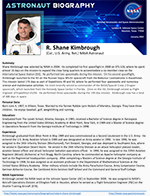 Shane Kimbrough was selected by NASA in 2004. He completed his first spaceflight in 2008 on STS-126, where he spent almost 16 days on the mission to expand the crew living quarters to accommodate a six-member crew on the International Space Station (ISS). He performed two spacewalks during this mission. On his second spaceflight, Kimbrough launched to the ISS on the Russian Soyuz MS-02 spacecraft from the Baikonur Cosmodrome in Kazakhstan. This mission lasted 173 days as part of Expeditions 49 and 50, where he performed four spacewalks and numerous science and maintenance activities. He most recently served as commander of the NASA/SpaceX Crew-2 Dragon spacecraft, which launched from the Kennedy Space Center in Florida. Once on the ISS, Kimbrough served as Flight Engineer of Expedition 65/66. He performed three spacewalks during the 199-day mission. Kimbrough now has a total of 388 days in space.